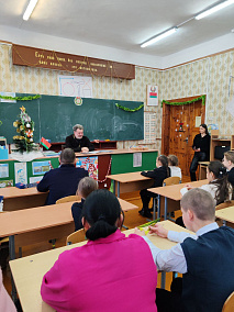 Иерей Александр Руфимский, после богослужения, провёл духовную беседу с учащимися и учителями ГУО "Базовая школа д. Приборово"